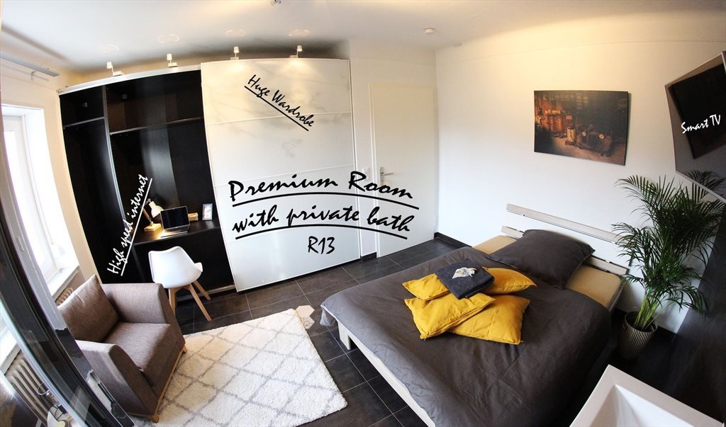 The house in rue de l’indépendance, Bettembourg is totally renovated each floor has 3 rooms (Two standard lockable rooms and one premium (private bath). We also have on each floor a bathroom and a kitchen. This add is for my 3 premium rooms (private bath)