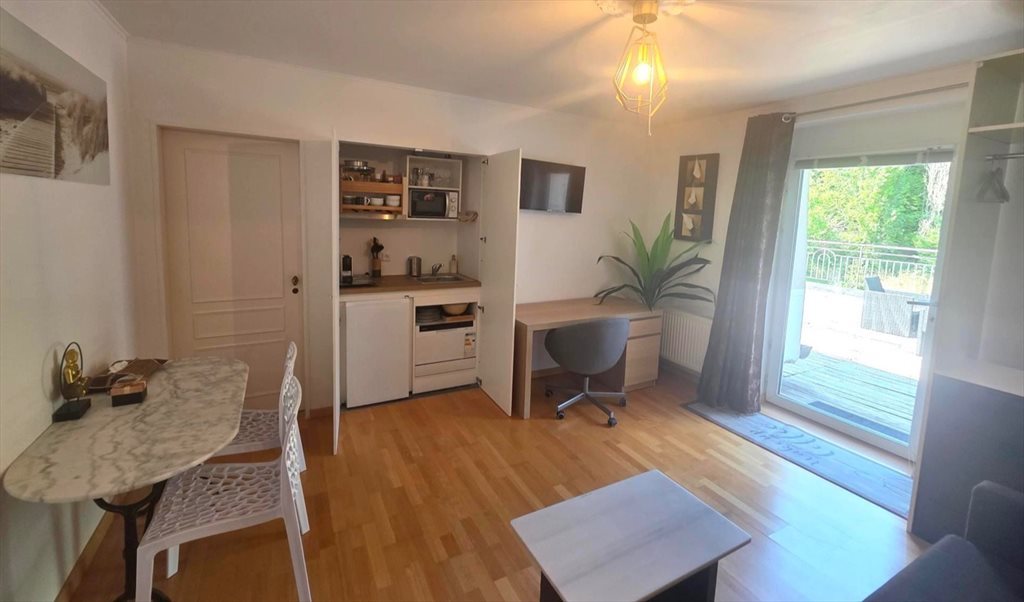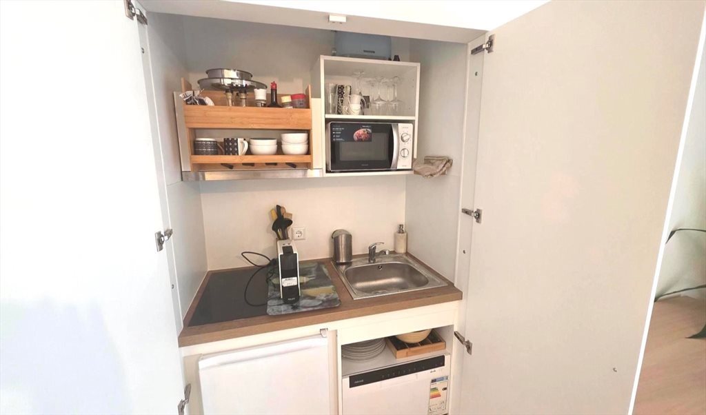 COMPOSE D 'UN GRAND LIVING SALLE A MANGER AVEC CANAPE CONVERTIBLE, UNE KITCHENETTE AVEC MINI LAVE VAISSELLE, CAFETIERE, TAQUE INDUCTION, FRIGO, HOTTE. MICRO ONDE, COUVERTS, TV SMART, VUE ET ACCES DRECTE SUR LA TERRASSE PRIVEE PANORAMIQUE DE 51 M2 AVEC VUE DEGAGEE SUR JARDIN, UNE GRANDE SDB BAIGNOIRE ET CABINE DE DOUCHE SEPAREE/ WC, UNE CHAMBRE SEPAREE AVEC UN GRAND LIT DE 180CM ,