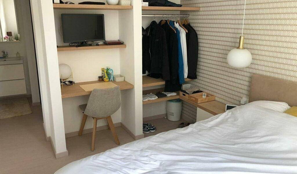 Each room is fully furnished with a bed, a desk with chair, a wardrobe, a nightstand as well as a lamp.