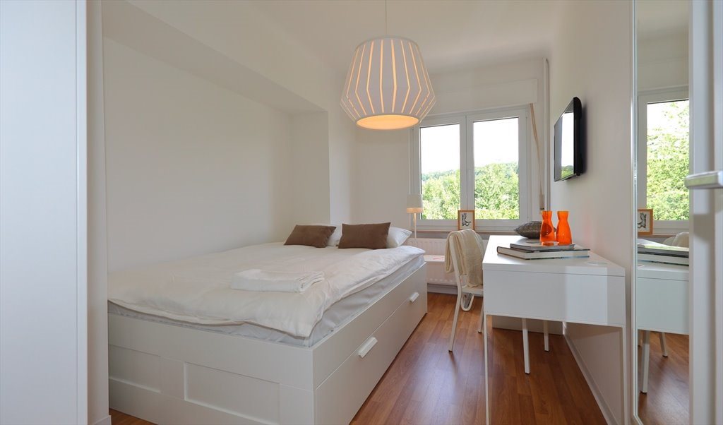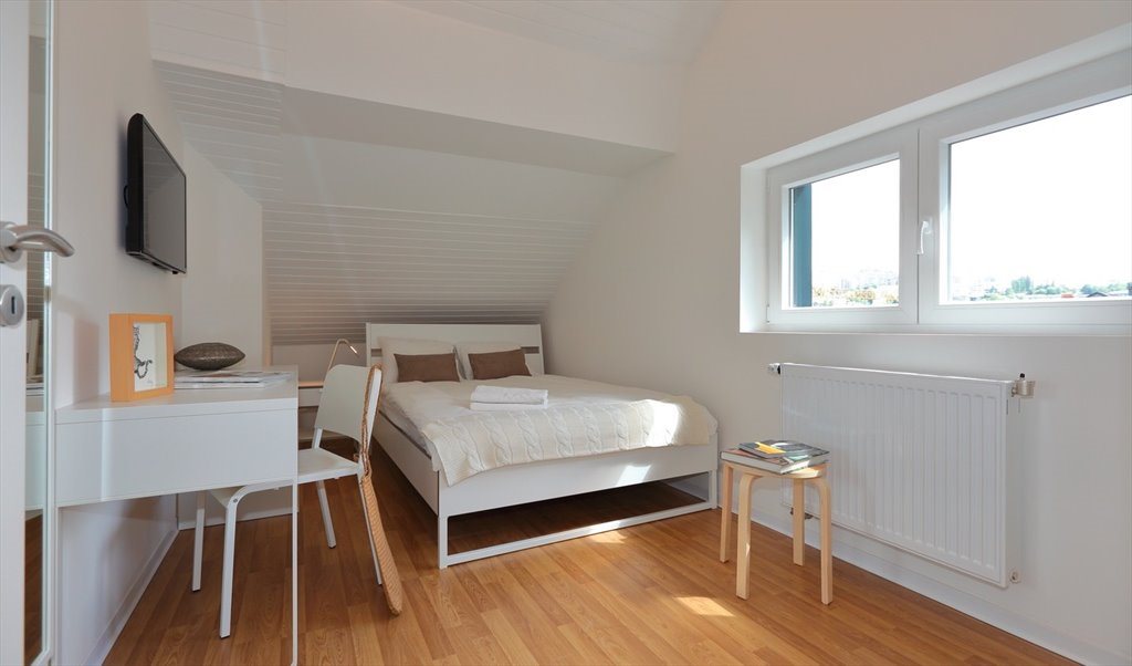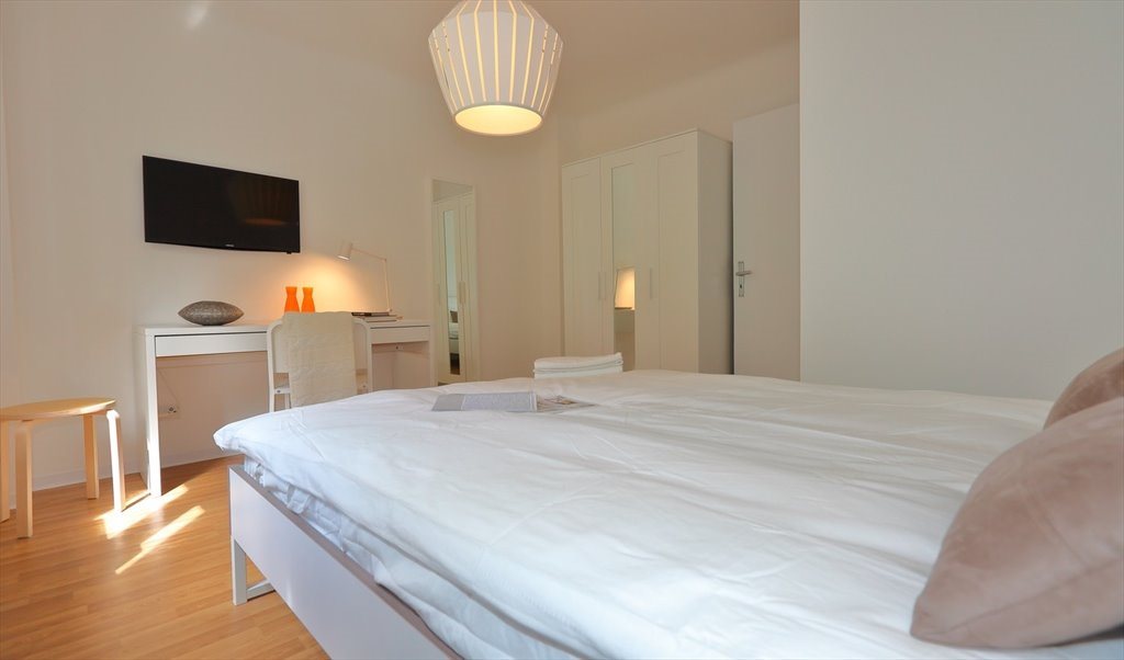 La chambre est équipée d’un grand lit avec matelas, couette (+ couverture hiver) et oreiller, d'une table de chevet, d’un bureau et d’une chaise, d’une armoire garde-robe, d’un téléviseur et de wifi.