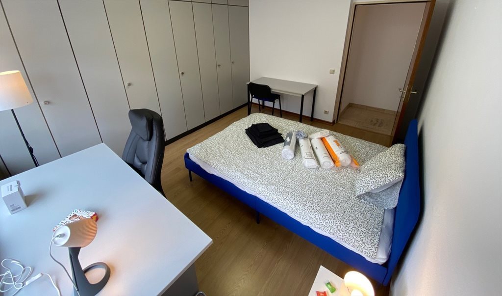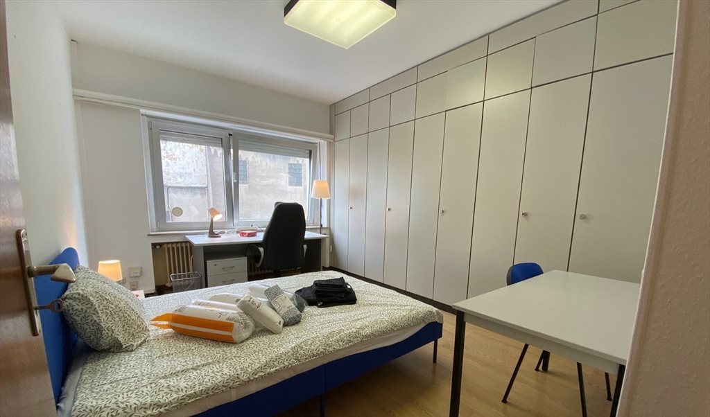 Luxembourg Centre ville, 21 boulevard Grande-Duchesse Charlotte, belle chambre meublée dans appart. en colocation (cuisine, 2 WC dont 1 séparé et sdb partagées), 14-16 m2, lit 140 cm, literie, bureau avec chaises, nombreuses armoires encastrées.