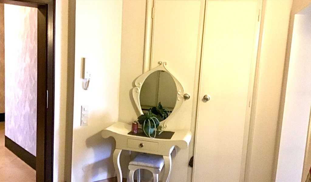 lavabo dans chambre, lit 200*140, bureau de style, fauteuil, armoire trois portes miroir central, miroir monumental