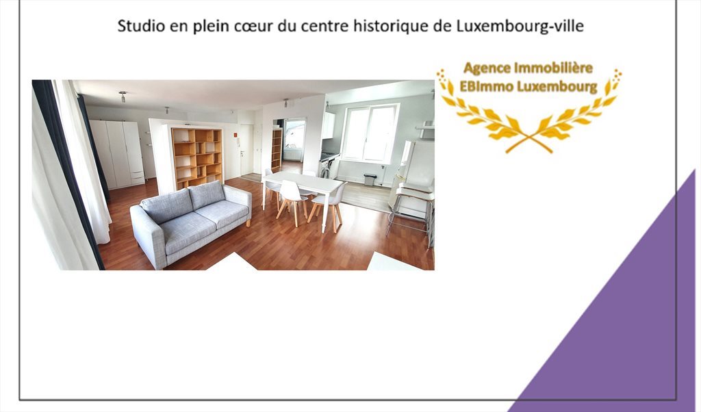 Exceptionnel et rare studio, lumineux et entièrement meublé à louer, en plein cœur du Centre Ville historique de Luxembourg, récemment rénové.